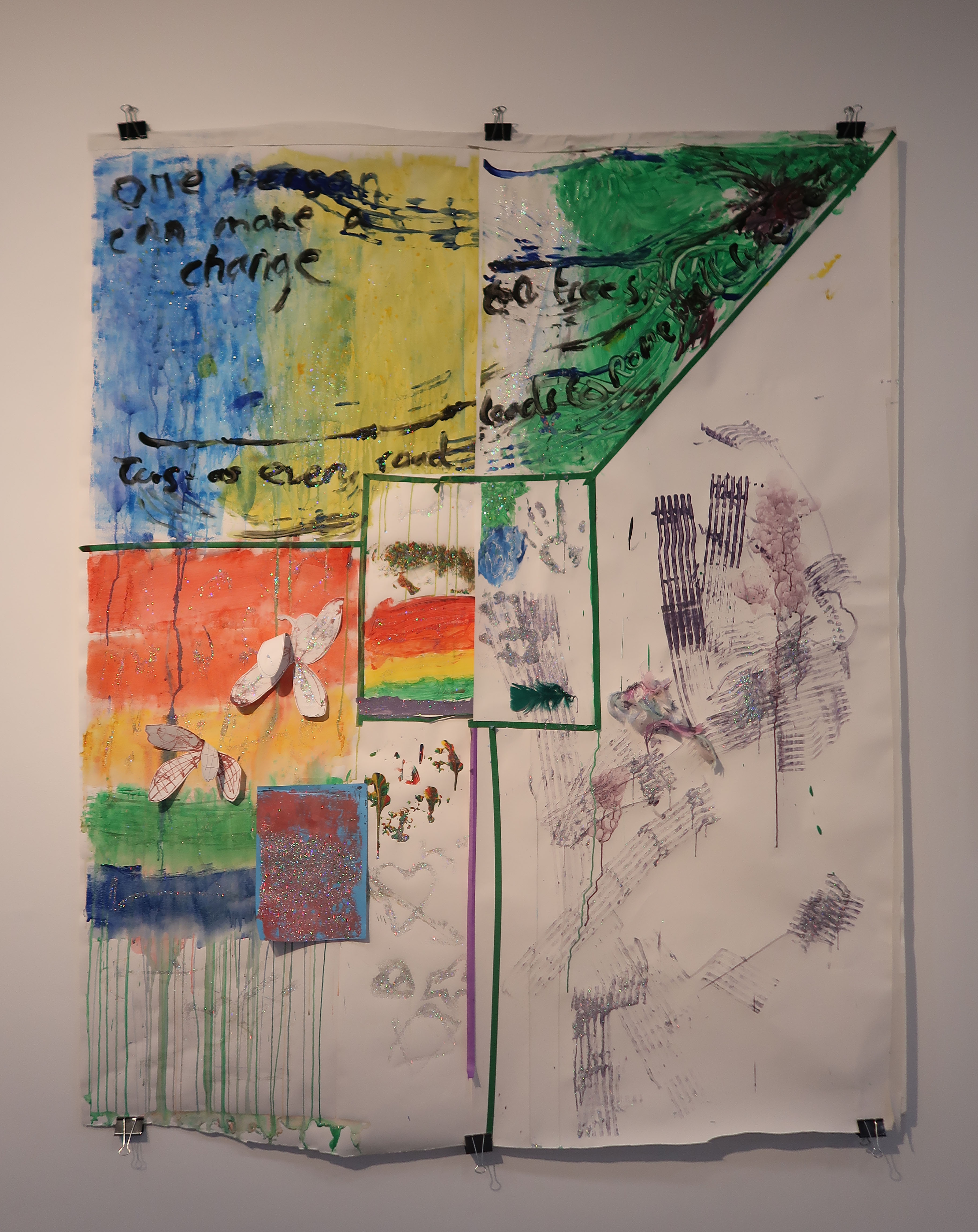 In celebration of the Art and Us programme I was invited to work with one family over two consecutive Sundays, creating works for an exhibition held during the gallery's Inclusive Practice in the Arts Symposium. We explored a range of art materials and processes relating to those often used with this family, creating outcomes which were reflective of many Sunday sessions.